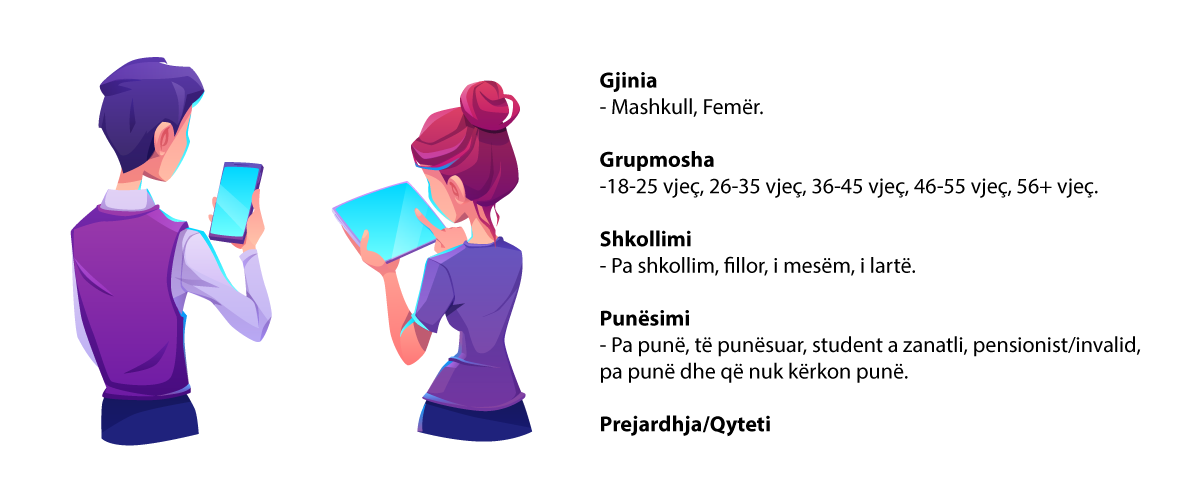 Në pamje të parë të thjeshta, po këto pyetje tregojnë ma shumë se veç përgjigje të shkurta. Studimi, përveç që ndanë përgjigjet varësisht prej mediumit, bën edhe ndarjen demografike të atyne që janë përgjigjë. Çfarë gjinie kanë? Çfarë moshe, çka bëjnë? Çka kanë kry a çka punojnë? Mandej, prej cilit qytet t’Kosovës vijnë?