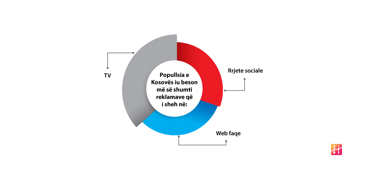 E njejta nuk ndodhë me televizionin! Në Kosovë, ma shumë se gjysma e njerëzve i kqyrin reklamat që iu dalin në televizion. Duhet me e pasë parasysh që këtë numër e rrisin dukshëm më të moshuarit.